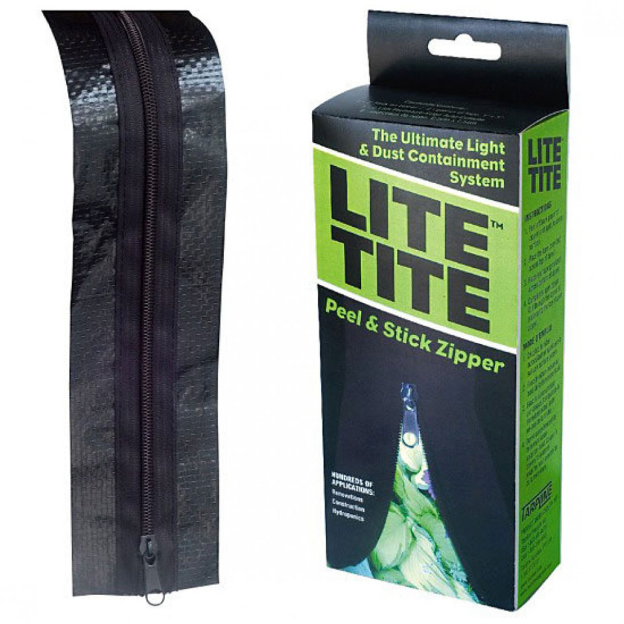 Heavy duty peel and stick zip system. Endless applications - use this clever product to easily and quickly create a simple re-sealable access doorway. Install a doorway in minutes with no tools needed. Easily bonds to any clean plastic sheeting, tarp, or building site sheeting. Use to seal off work areas and protect from dust, moisture etc. Use to create grow rooms.